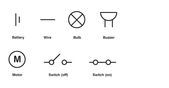 Circuit diagrams are a quick and simple way to represent these myriad different circuits so that you can share your electronic circuits with others. They use symbols to represent physical components like bulbs, switches and motors: