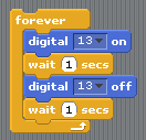 This script will blink your LED on and off every second (with S4A the fastest this can be is every 0.7 seconds)